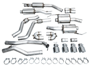 There's a reason this exhaust has transcended to the kit of choice. Boasting an asymmetric X-pipe and robust resonators, the AWE Touring Edition Exhaust for the Ford Explorer ST generates a smooth, exotic sound signature from the ST’s 3.0LTT engine, distinguishing itself from conventional exhaust systems prone to degradation over time. AWE’s straight-through Touring Edition is armed with patented 180 Technology®, which effectively eliminates drone without sacrificing performance. The Dyno tells all: real-world gains of +13 hp and +12 lb-ft of torque, we're talking a real, noticable power increase. Every AWE Exhaust crafted for the Ford Explorer ST comes complete with slip-fit adapters, ensuring seamless integration with factory downpipes and enabling straightforward accommodation of aftermarket upgrades - with a genuine 3” connection. Headed out back, Explorer ST drivers can personalize the aesthetic with options of chrome silver or diamond black quad 4.5” double-walled, slash-cut tips (that are also adjustable so you can move 'em in and out as you like for the perfect fit). These exhausts uphold emissions compliance and are meticulously crafted in-house in the USA using premium T304L stainless steel. Supported by AWE’s Perfect Fitment Guarantee, No CEL Guarantee, and Lifetime Warranty, there's no wonder the AWE Touring Edition Exhaust has become the leader in Explorer ST performance.