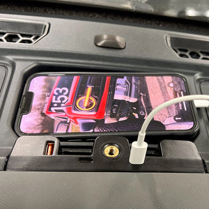 The IAG I-line Dash USB Hub was designed to fit perfectly in the accessory piece in the upper dash of your Ford Bronco. This Dash USB hub is an elegant solution to increase the number of USB ports in your vehicle, allowing you to charge multiple devices simultaneously. This is the perfect upgrade for road trips or multiple passengers.