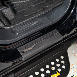 The IAG I-Line Door Sill Protectors enhance the appearance of your interior while providing useful protection to the door sills. The interior door sills of the Bronco are easily scratched from people and pets entering and exiting the vehicle. The OEM painted door sills can also be slippery when wet. The IAG Door Sill Protectors are constructed of textured ABS plastic to provide an excellent all-weather, non-slip protective layer to your door sills.