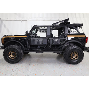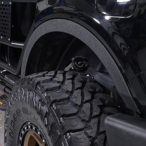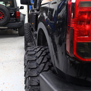 The IAG I-Line No Drill Fender Delete Kit is designed to provide maximum tire clearance when driving off-road. The OEM Bronco fenders are easily removed, but they leave behind an unsightly and unfinished appearance. This fender delete kit provides a nice, clean look while also providing for maximum tire clearance during off-road adventures. Removal of the fenders also increases the distance possible objects you might encounter on the trail, such as boulders, trees, etc.