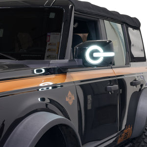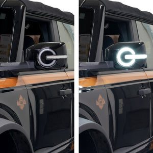 The IAG I-Line Side Mirror Cap Kit will protect your Bronco’s side view mirrors from rock chips and damage, while providing extra visibility to other drivers on the road. Each cover has a lighted turn signal indicator that works with your Bronco’s OEM indicator switch. These sleek Mirror Caps are sure to turn some heads with their high-visibility LED lights and sleek, gloss black finish.