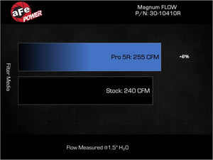 This filter features five layers of pre-oiled cotton gauze media to provide maximum performance. Its progressive layering allows the filter to flow at high levels even when dirty. This media is perfect for street and/or track use. Pro 5R filters are easily recharged with aFe's POWER CLEANER and blue air filter oil. aFe POWER performance air filters use a rounded, evenly spaced pleat design which allows for more usable filter surface area, providing increased flow and greater dust holding capacity. This pliable sealing surface conforms to even the most uneven filter housing, making for a perfect filter fit and sealing surface every time. This design eliminates the use of gaskets or sealants and always goes back to its original form. All aFe POWER flat panel performance air filters are constructed with a full 360-degree polyurethane frame. Unlike other materials that degrade after repeated heat cycles in an engine bay, polyurethane maintains its original molded shape.