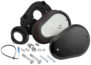 K&N's Street Metal Series High-Flow Air Intake Systems provide attractive styling, offer increased airflow and deliver more horsepower & torque to your Harley-Davidson motorcycle. These air intake systems eliminate the stock OE air cleaner and replace it with a complete high-flow air intake system to increase power. The sturdy custom aluminum backing plate mounts directly to the throttle body via an aluminum integrated, internal-run breather system. The air intake system comes with a K&N Air Filter for high air flow and long service intervals. The K&N air filter is washable, reusable, pre-oiled and ready for installation. To help absorb vibration, a durable mounting gasket is also included. A custom black powder coated aluminum flare-shaped cover gives this air intake good looks while your bike is powering down the highway or at your local show.