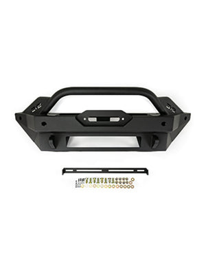 The Bronco FS-15 Series is a 2021-2022 Ford Bronco Winch-Ready Mid-Width Front Bumper, with the option to include modular wings to make it a full-width bumper. The light mount tabs on the bull bar can be oriented to mount a 13-inch light bar above or below the bull bar. Up to a 12,000 lb. winch can be mounted on top of the bumper. At the center of the bumper, either a 20-inch dual row light bar or 6 pod lights can be mounted. Two recovery mounts that take 3/4" D-rings provide additional recovery options. This bumper is compatible with the OEM plastic & metal skid plates, and also retains the factory parking sensors.