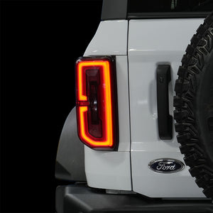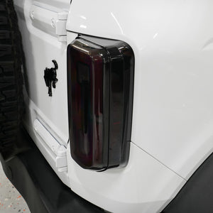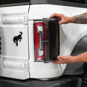 Designed to fit the tail lights on two and four door 2021+ Ford Broncos, the IAG I-Line LED Tail Light Covers bring both style and protection to your vehicle. Featuring a smoked finish, these covers not only enhance the aesthetics of your Bronco but also protect your tail light lenses from scratches and potential damage out on the trail. With a design that seamlessly covers the entire tail light, you can enjoy a perfect fit and custom look without the need to remove or replace your OEM Signature LED tail lights.