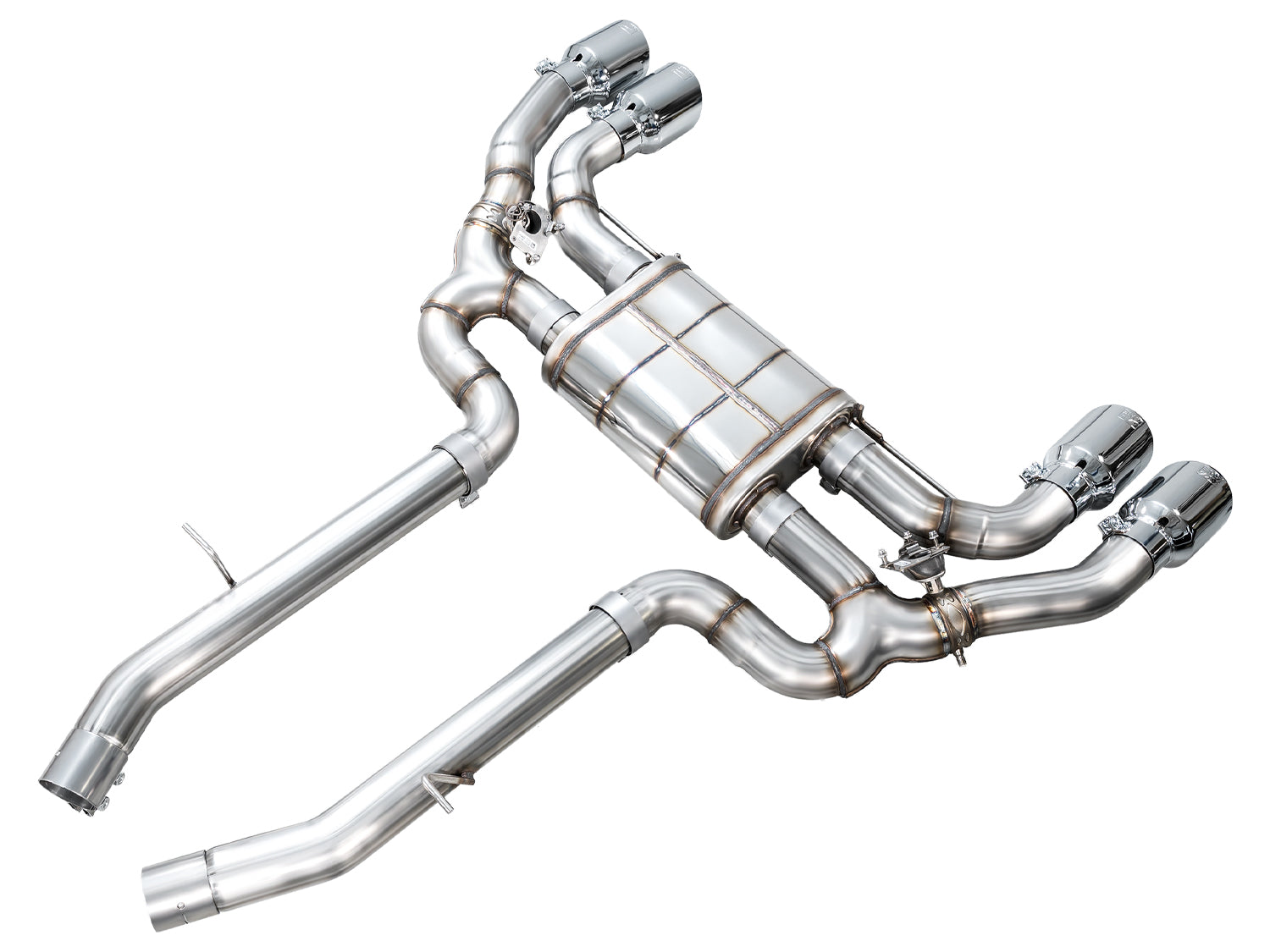 Finish it off with signature 4.5” double-walled, slash-cut tips in your choice of chrome silver or diamond black—each stamped with the AWE logo and individually adjustable for precise placement.