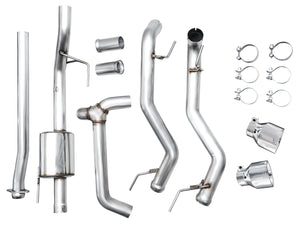 Complete 0FG Catback Exhaust, two double-walled diamond black tips, and all necessary hardware required for installation.