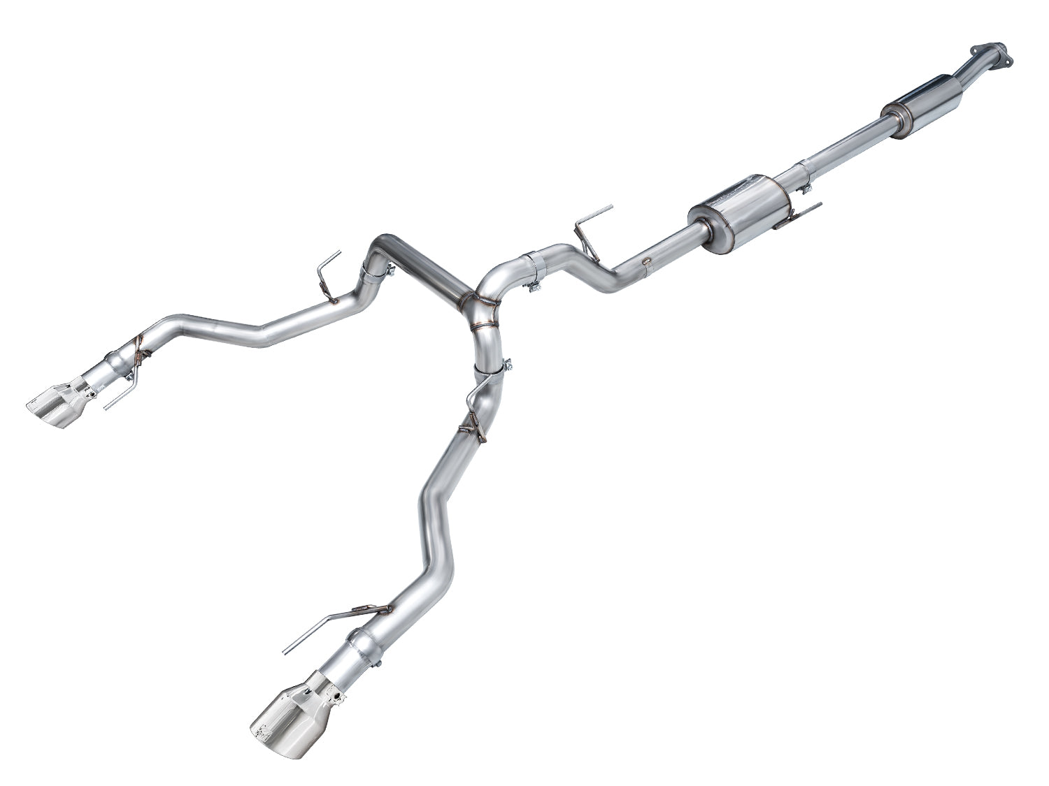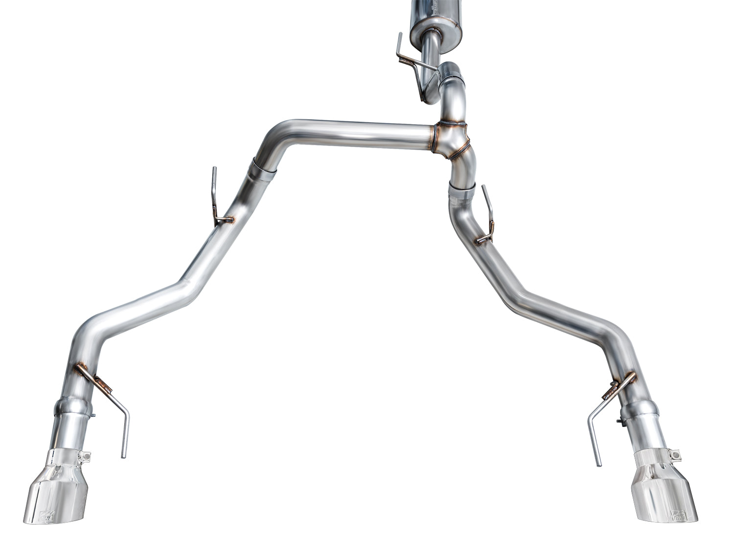 The 0FG Catback for Tremor features a unique tip outlet design specific for the rear bumper cutouts consisting of two 5” double-walled, slash-cut tips in AWE’s signature chrome silver or diamond black finish.