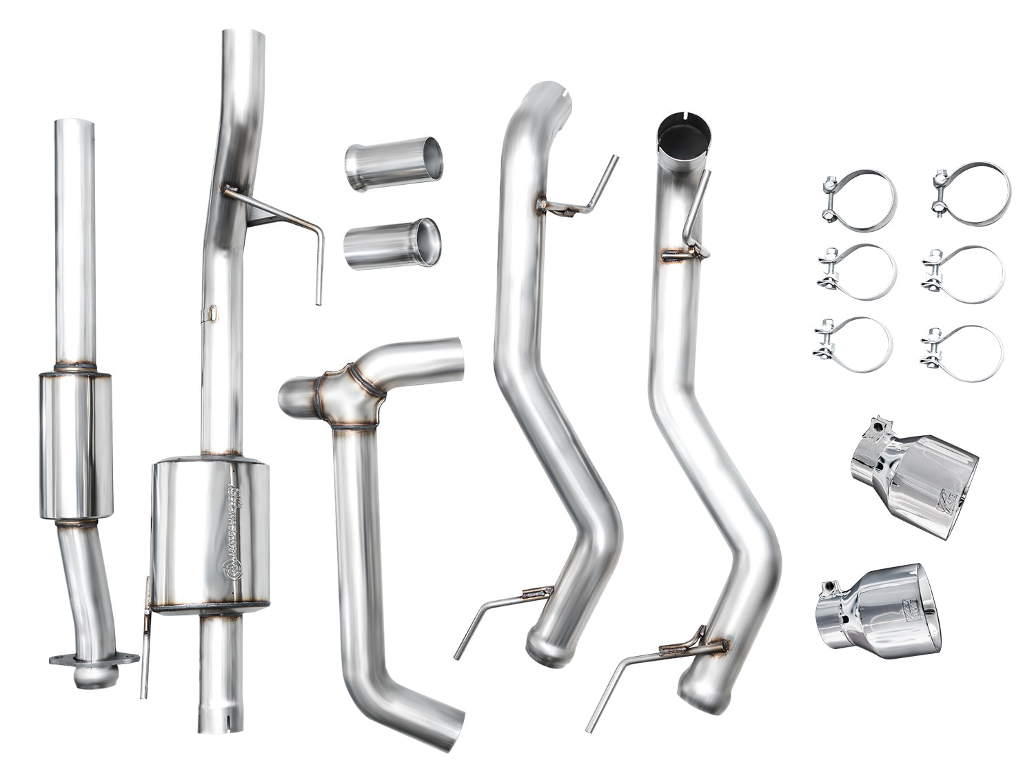 Featuring your choice of non-resonated (aggressive) or resonated (sophisticated) mid-pipe and AWE’s proprietary, patented drone-canceling solution, 180 Technology®, the 0FG Exhaust delivers a unique dose of refined aggression out of your F-150, without any drone at cruising speeds. The AWE 0FG Exhaust is a rugged 3” T304L stainless steel catback configuration with a 100% straight-through design for optimal flow. Regardless of low or high gear, the 0FG Exhaust will be on the top of your playlist.