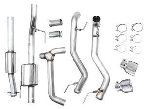 Complete 0FG Catback Exhaust, two double-walled diamond black tips, and all necessary hardware required for installation.