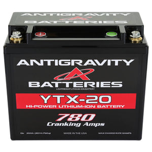 The Antigravity YTX20 is a Lithium battery to replace the OEM Lead/Acid Battery often called the YTX20, YTX20L, YTX20H, YTX20-BS or the “20 Size”. The OEM standardized size of the YTX-20 is used in a many different manufacturers models of Motorcycles including Harley Davidsons, Victory, Metric Cruisers/Tourers as well as many Powersport Vehicles such as UTVs/ATVs, Snowmobiles and more. In comparison, Antigravity’s Lithium-Ion version offers impressive weight savings at only 4.68 lbs, and OVER 2.5 times the Cranking Power of the Lead/Acid version! So those difficult-starting large Custom V-Twin Motors can be turned over with ease.