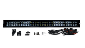 Introducing our advanced double row combo light bar, designed to deliver both flood and spot beam patterns for optimal visibility in any situation. Featuring a sleek black background and housed in durable die-cast aluminum, this light bar combines robust construction with modern aesthetics. With a powerful output of 120 watts and 8400 raw lumens, it ensures maximum brightness to illuminate your path. The IP67 waterproof rating guarantees reliable performance in harsh weather conditions. Included in the package are mounting brackets and a wiring harness with an illuminated switch, making installation straightforward and hassle-free. Upgrade your lighting setup with this high-performance combo light bar and experience unparalleled clarity and durability.