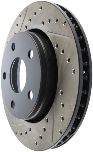 StopTech Drilled and Slotted Sport Rotors are 1-piece direct replacement brake discs for factory brake systems and stock calipers that look great behind your wheels – and offer significantly improved braking performance. The unique cross-drilling and slotting aids with heat and brake dust dispersal, prevents glazing of the pads, adds bite and improves wet and dry braking performance. Built to last, the black e-coating provides protection from corrosion and the high carbon metallurgy (in most applications) offers quieter operation, better crack resistance and increased performance. Warranty Technical Bulletin