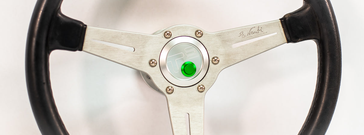 Upgrading to a nice Aftermarket Steering Wheel can really change your perception of a vehicle. The look and feel of it in the hands will have you thinking "this is a freakin' Racecar!" Typically these nice Italian Steering Wheels are finished off with a plastic horn button though and many of us have experienced them falling out of the wheel into your lap. We wanted finish off this upgrade and elevate the driving experience in a better way!