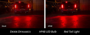 Upgrade. Add a modern appearance to your vehicle with the 1157 HP48 tail light bulb. Populated with 48 Epistar 3014 LED chips, the HP48 upgrades the factory yellowish incandescent bulb to a modern LED appearance. Thanks to the cap on the top, the light output is directed backward and away from the bulb, instead of straight out. A diffused PC lens surrounds the LED chips, allowing the light output to shine much more uniformly. Best of all, installation only takes minutes - simply take out your factory bulb and the HP48 will fit snugly in the socket.