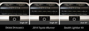 Included in the box: Two (2) application-specific SS30 brackets for installation on 2014-2019 Toyota 4Runner. One (1) SS30 Stage Series lightbar. One (1) heavy-duty single output 2-pin offroad wiring harness. One (1) aux switch adapter wire. Mounting Hardware. Installation Guide.