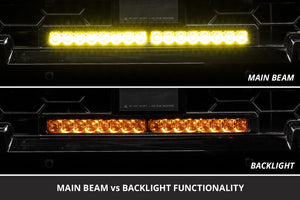 Amber Backlight. All Stage Series LED Light Bars include an integrated amber backlight that fully illuminates the TIR optic, providing distinctive accent lighting and enhanced visibility when parked or stopped on the trail.