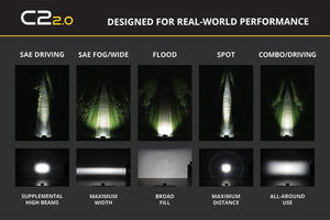 SAE Driving is designed to supplement your high beams, but it's also great for general illumination, providing extra width. The new C2 2.0 Driving pattern measures 20x12 degrees, providing the perfect width to fully illuminate the road ahead at high speeds.