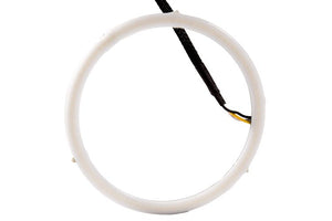 All input wires activate the halos, at different brightness levels. All switchback halos ship with "low" priority drivers. This means that if both "low" and "high" power inputs are powered, the LED will light up in white, with low power level. This is convenient for connecting the red wire to a parking light or DRL signal, for use during the day as a high-power DRL. Then, if the white wire is connected to the headlamp power, they will dim down at night. If the yellow wire is powered at any time, the halo will light up in amber color, intended for signaling. If you'd like to use amber all the time, no problem! It will dim automatically if powered for more than two seconds, to keep it safe.