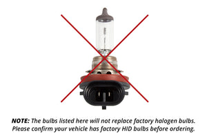 OEM Replacement. These bulbs are a direct replacement for the factory HID bulbs on your Subaru Crosstrek. Since HID bulbs lose brightness after just a few months of use, these will provide a nice increase in output. You can also improve your vehicle’s styling with a cooler color temperature.