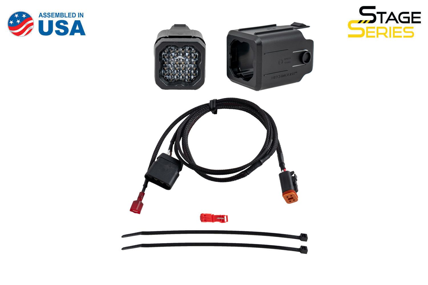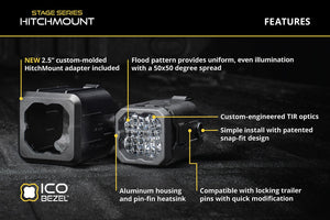 Add significantly more light output when backing up at night with our Stage Series HitchMount Reverse Light Kit! This kit allows you to mount one SSC1 or C1R LED pod in your 2-inch or 2.5-inch trailer hitch receiver, adding a high-power reverse light, additional running light, and an optional 4th brake light with the C1R option. With the included wiring harness, this kit connects to your vehicle's 4-pin trailer connector for simple, everyday operation.