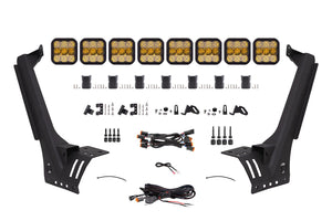Perfect Fitment. The Windshield CrossLink Lightbar Kit for the 2018-2023 Jeep JL Wrangler from Diode Dynamics allows you to mount eight linked SS5 LED pods above the factory windshield. These application-specific brackets were CAD-designed to bolt into place using factory mounting points above the factory windshield. No cutting or drilling required!