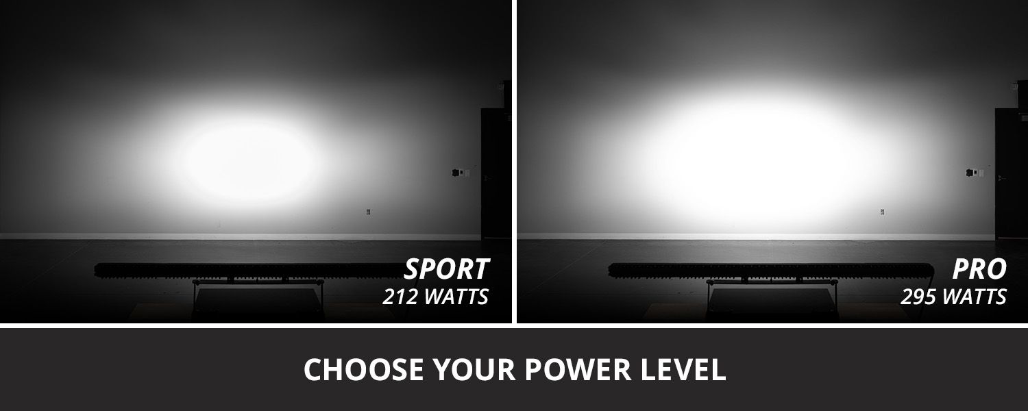 Choose Your Power Level. The SS50 Dual-Color LED Light Bar is available in two different power levels. All options use high-intensity, automotive-grade LED emitters and TIR optics for unmatched focus and output. The Sport model offers the best bang for your buck, while the Pro model takes things a step further with a noticeable boost in power.
