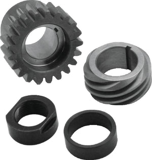 Pinion and oil pump gear kit for use on 1977-1989 big twin engines and S&S flywheels for 1977-1999 engines, including S&S SH-Series and V-Series engines. Includes middle size (Red) Oil pump 24T drive gear, 6T pinion shaft oil pump gear, pinion shaft spacer and pinion shaft nut.