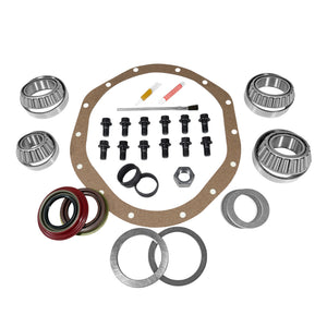 Yukon Master Overhaul kits give you all the high quality parts you need to start & finish every differential job. Yukon offers more tailor-made kits than any other manufacturer in the industry to meet your specific installation needs. This kit uses Timken bearings and races along with high quality seals and small parts. Included in this kit are carrier bearings and races, pinion bearings and races, pinion seal, complete shim kit, ring gear bolts, pinion nut, crush sleeve (if applicable), oil baffles and slingers (if applicable), Thread locking compound, and marking compound with brush. Yukon's Master Overhaul kits are the most comprehensive and complete kits on the market. They do extensive research to ensure that every kit is specially tailored to your application. without shims.