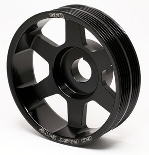 It might be hard to imagine how reducing the mass of a pulley makes a car go faster, but accelerating a heavy factory pulley from say 3000-7000 RPM in a second or two saps a measurable amount of torque. GFB Lightweight Pulleys reduce inertia by up to 85 percent, so most of the torque that used to accelerate the pulley can now be applied to the wheels.