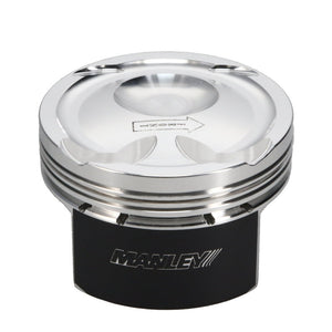 2618 Alloy Forgings: We use domestic 2618 alloy forgings, ensuring superior strength and performance.Chrome Moly Wrist Pins: Premium Chrome Moly wrist pins come standard with our Standard Series Pistons. For select SKUs, we offer wrist pin upgrades to 9310 and Turbo Tuff/DLC alloys, providing additional durability.Exacting Ring Lands and Grooves: We adhere to strict standards for piston ring lands and grooves, resulting in enhanced ring seal and more power.Cam and Barrel Profiles: Our pistons boast cam and barrel (skirt) profiles that generate substantial power while being gentle on cylinder walls.Unique Fixturing: Manley's unique fixturing allows for skirt turning and ring groove machining in a single operation, ensuring ultimate ring groove to skirt squareness.Will accomodate +1mm valve sizes and includes premium steel top ring sets and round wire locks