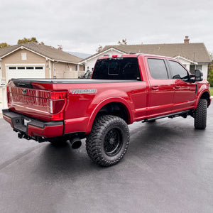 Banks Power introduces the new 5 in. Monster Exhaust designed specifically for the 2017-2022 Ford 6.7L F-250/350/450 Super Duty pickup trucks. The DPF-back exhaust system features constant-diameter 5 in. mandrel-bent aluminized steel tubing and a massive patented tip which virtually eliminates backpressure after the DPF. Change Your Look. Super Duty owners can choose from two huge patented 6.5 in. x 7.5 in. ob-round slash-cut exhaust tips; chrome-plated polished stainless steel or high-temp matte black with a rolled edge. And, unlike other brands, Banks chrome-plated stainless tip will not turn brown with heat. Up The Flow. The stock exhaust tubing measures a mere 3.5 in. on the outside, compared to the Monster Exhausts massive 5 in. outer diameter as such the Banks system offers a 110 percent greater flow area than stock.