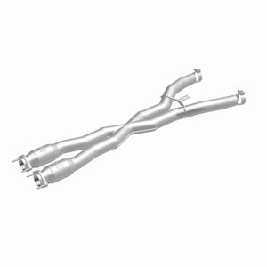 Keep the check engine light off with MagnaFlow OEM Grade Federal/EPA Compliant Direct-Fit Catalytic Converter 21-973. With features including free-flowing mandrel-bent tubing and highly corrosion resistant stainless steel construction, easily install this spun body converter yourself using the proper tools, no cutting or welding required. MagnaFlow's state-of-the-art metrology department uses the latest 3D scanning systems during research and development, so you can be confident that your new part will fit and function like the original equipment. By replicating the OE spun body design, the single laser fusion weld greatly reduces the possibility of a leak, and our compact, low-mass design also allows for greater thermal efficiency. This direct-fit catalytic converter is designed specifically for the 2014-2019 Chevrolet Corvette and interchanges with OE parts 84604832 and 20968757, among others. Hardware is included to eliminate the hassle of working with corroded factory parts. This replacement part is designed to meet or exceed Federal emissions requirements set forth by the EPA, complying with legal standards for OBDII Federally registered vehicles with California or Federal/EPA Emission systems.