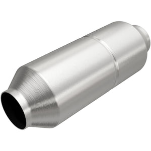 Keep the check engine light off with MagnaFlow OEM Grade Federal/EPA Compliant Universal Catalytic Converter 51755. The Universal design allows the part to fit a wide array of vehicles (cutting and welding required), and the stainless steel construction of this spun body catalytic converter is highly resistant to corrosion. The single laser fusion weld of the spun body greatly reduces the possibility of a leak, and our compact, low-mass design also allows for greater thermal efficiency. This replacement part is designed to meet or exceed Federal emissions requirements set forth by the EPA, complying with legal standards for OBDII Federally registered vehicles with California or Federal/EPA Emission systems.