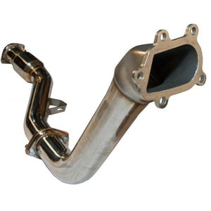 Made from heavy gauge 4" inside diameter 304 stainless steel, the Turbo XS Downpipe is larger than any other WRX/STi Downpipe on the market. Why is that important? Because, despite what your girlfriend might tell you, size does matter. Turbochargers work best when there is large pressure and temperature differential across the turbine wheel. Having a large, free flowing downpipe is what give you that large pressure and temperature differential. The downpipe tapers to 3" towards the tail and even includes a pre-welded 02 sensor bung for installing an aftermarket wideband O2 sensors. OEM style doughnut gasket enhances flexibility, durability and sealing as opposed to lower quality flex joints.