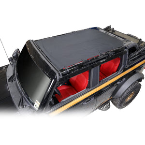 The IAG I-Line Top Only Canvas Sunshade covers the front and rear passenger area of your 2021+ Ford Bronco. This sunshade allows you to put the top back without the fear of getting sunburned. The lightweight nylon canvas material provides superior shade and sun protection for your occupants on hot days.