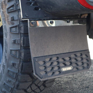 Putco’s New Hex Shield™ mud flaps are custom-fit and deliver the best protection against rocks, mud, snow buildup, and all the other debris your truck likes to find on the road. These new Mud Skins™ feature our popular Hex Shield™ pattern and install in just a few minutes. These are manufactured with carbon black high-density polyethylene (HDPE) right here in the USA! It's time to protect your truck from debris with the coolest no-drill head-turning offset mud flaps on the market. The offset design is the perfect style for today's pickup trucks with oversized tires... or not! The flap is made with the Gortillatuff Spashguards™ – this stuff is thick and extremely durable for anything that mother nature decides to throw at it.  Get a front set, the rear set, or the full set today!