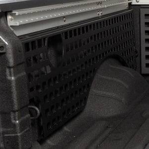 Secure your cargo in the back of your truck bed with this next level one of a kind truck bed storage organizing system.  New from Putco are the Molle Panel inside truck bed panels system. This amazing cargo storage system is perfect for latching down nearly anything you want to secure in place like Molle bag, trail gear, construction gear, jacks, or anything your heart desires. Available for the bulkhead, side bed and tailgate area. Choose from getting the entire set or just getting one side. Great for Overlanding pickup trucks or work trucks to hang and organize gear, tools and more. These truck bedside organizers called molle panels are great for storing your gear and organizing your truck bed whether you use your pickup for work or play. Plus the are a must-have for the overland truck for your next outdoor adventure.Constructed out of durable CNC cut 10 gauge aluminum that is finished with a mini-textured black powder-coat. This American made panel system works with most industry-leading mounting accessories like Quickfist, Kolpin, Molle, and much more. Also, this come is compatible with most soft roll-up and hard fold cover on the market.Installing a Molle panel is simple with no drilling or cutting of any kind and its custom design for your year, make and model allows you to use your OEM tie-down area and other standard OEM features of your truck. Each panel is backed by a three-year warranty. So if you are tired of your cargo rolling around and want it secured in place the Putco Molle Panels are for you.
