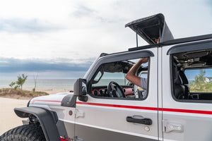 The Rugged Ridge Voyager Soft Top is easily the most stylish and versatile soft top available for Jeep Wrangler JL models. Designed with sleek, fastback styling and packed with all the features you could want in a replacement top. The Voyager's frameless design installs snugly over the factory sport bar for a contoured fit and low profile, with no bulky bows or unsightly bulges. Larger tinted side windows offer greater visibility and are easily removed by means of heavy duty self-correcting zippers. Once removed, the windows store conveniently inside the built-in overhead panel, keeping them safe from damage and ready to install at a moment's notice. Best of all, the Voyager top's fold-back feature affords you open-top enjoyment in just seconds. Constructed of 30 oz. premium sail cloth fabric with sealed seams, the Voyager Soft Top is built to last and backed by an industry-leading 5-year warranty.