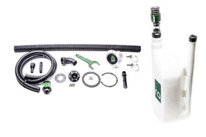 Complete refueling kit includes 6 gallon fuel jug with dry break fitting, fender mounted dry break recepticle, and filler hose and fill neck. Compatible with Radium FCST fuel cells.