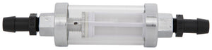 Spectre's premium Clearview fuel filter kit is a universal fuel filter that can be used with 1/4 inch to 1/8 inch fuel line. This kit includes a set of 1/4 inch, 5/16 inch and 3/8 inch barb fittings. This inline clear view fuel filter features a glass body for clear, quick viewing of any debris trapped in the white mesh. The inner white mesh filter is replaceable, saving time and money. This kit was designed for non-fuel injected applications and it is easy to install with no special tools or skills required.