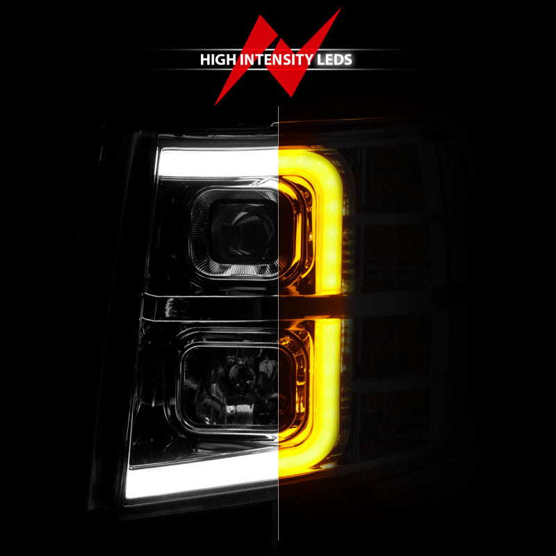 ANZO 2007-2013 Chevrolet Silverado 1500 Projector w/ Light Bar Chrome Housing w/ Sequential - 111546