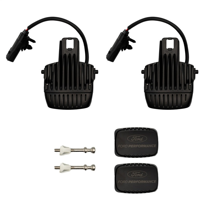 Ford Performance Parts worked with one of the most recognized names in Off-Road lighting, RIGID to develop this Off-Road Light Upgrade kit which works exclusively on the 2021-2023 F-150 Raptor y 2022-2023 Bronco Raptor with the factory equipped fog lights. The Kit allows you to change your factory Auxiliary light assemblies to RIGIDs SR-M Driving Lamps in your Raptor Bronco or F-150 Raptor OEM fog light locations. This kit gives you everything you need to mount the lights for a clean, from-the-factory look. Made from high quality components, these complete assemblies are plug-and-play and completely reversible with no cutting or splicing. These assemblies are sure to deliver an easy-to-install, high quality off-road light package.