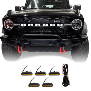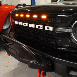 The IAG I-Line 5PC Amber LED Grille Lights add a useful touch of style to the grille of your Badlands, Wildtrak, or First Edition Bronco and give it that “Raptor” look. The amber LED lights shine brightly in the front of the grill, increasing visibility and alerting other drivers of your position. Constructed of high quality ABS Plastic, the waterproof LEDs feature a super-bright 135 Lumens of light.