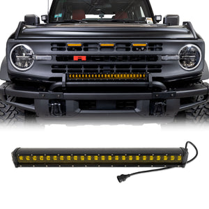 The IAG I-Line Yellow LED Light Bar is designed to mount to our Mini Bull Bar with Long Light Bar Mount. This off-road light bar features 24 Super Bright LEDs for 11,200 lumens. The waterproof housing is constructed of die cast aluminum for strength and durability. Includes waterproof electrical connector and Plug and play wiring harness.