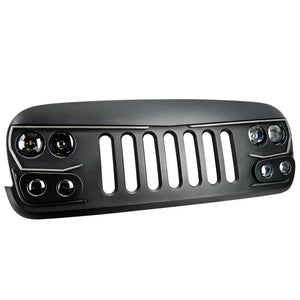 The ORACLE Lighting Vector Series Grill for the Jeep Wrangler JK is the first full-featured replacement grill with integrated LED light emitters for Low Beam, High Beam, as well as a Dynamic LED DRL. This unique design is equipped with an array of application-specific LED lighting features and has the aggressive styling and rugged durability that Jeep owners demand. These modules are now robotic-ally sealed to create an Ingress Protection Rating of IP68 which will keep moisture out of your fixtures even from exposure to pressurized water spray and brief underwater submersion. The DRL modules are now mounted with hardware rather than adhesive to make these parts easier to remove for grill painting and maintenance. Each LED beam can be independently adjusted in order to put light on the road without blinding oncoming traffic, especially important for lifted Wranglers. The separate driving and Low Beam lights allow for proper light distribution for optimal road legal light. The Vector Series Grill features an impressive 5,600 Combined Lumen Low Beam with advanced optics for precision lighting that illuminates the road for increased driver visibility without creating glare that can blind oncoming traffic. 7,200 Combined Lumen High Beam for illuminating any dark landscape. The simple wiring connection is "Plug and Play" thanks to the included harness adapter. Additional features of the ORACLE Lighting Vector Series Grill include an integrated LED Daytime Running Light which increases driver safety. This DRL also features a unique "startup sequence" Dynamic LED display. Another safety feature is the LED Turn Signal that is 4x brighter than the factory turn signal lamp. The components of this project were CAD developed to insure that the fit and finish of this product matches factory quality and fitment.
