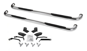 The 4000 Series Side Steps are a pair of classic 3" round tube steps with a 90° bend at each end. High-traction composite step pads makes entering and exiting a truck or SUV safe and easy. Installation is simple with no cutting or drilling required on most vehicles. Vehicle-specific mounting brackets are included. Limited Lifetime warranty on materials, construction and Finish. Installation Instructions