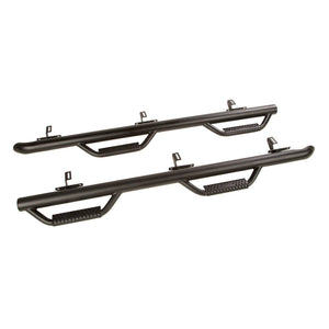 Rugged Ridge Spartan Nerf Bars are the ideal solution for JK owners looking for a little help climbing into their lifted Jeep without sacrificing that aggressive off-road attitude. Spartan Nerf Bars feature a 3-inch OD primary tube that fits in a higher position than conventional tube steps offering a cleaner look, while patented drop-down step hoops at each door gives you firm footing for easy entry & exit. Constructed from .084 wall steel tubing and finished with a durable 3-stage textured powder coat, Rugged Ridge Spartan Nerf Bars are designed with the strength and enduring good looks that your Jeep demands. Includes all necessary installation hardware and installation instructions.