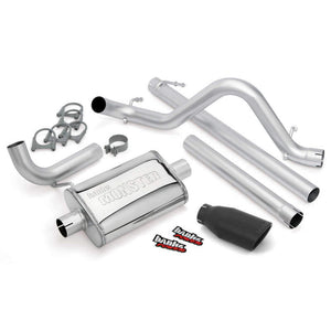 Huge 2.5 inch stainless mandrel-bent tailpipe with a polished tip. Straight-thru Monster muffler flows up to 119 percent better than stock. Slashes backpressure, rich, authoritative sound. Constructed of heavy-gauge stainless steel, Banks Monster features a supersized, 2.5 inch tailpipe with a stainless tailpipe tip polished to a mirror finish - or choose the new Black tip! Monster Muffler, Banks straight-through performance muffler, is the industry's least restrictive, more than doubling the stock flow. Monster virtually eliminates backpressure from the catalytic converter back, for more power and efficiency - and an authoritative, yet civil, exhaust note. Available for 2-door and 4-door models. Includes: Stainless Monster muffler, Stainless 2.5 inch tailpipe, Polished Chrome or Black stainless tailpipe tip, Mounting hardware.