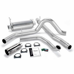 Amplify your truck's performance at the friendliest price around! Gain up to +50 hp/+88 lb-ft 8 Percent more towing MPG Chrome tip Pickup: Banks Git-Kit produces rear-wheel gains up to +50 hp, +88 lb-ft torque and saves you an average of 8 percent in fuel when you're toting something heavy behind you. Maintains safe EGTs to preserve engine durability. Fitment Notes: Important - Some vehicle configurations require an extension kit for proper fit. 1999 Power Stroke variations: Ford trucks for model year 1999 fall into three categories: 1999, early 1999.5, late 1999.5. It is important to know the specific model. Check the build date on the tag inside the driver's door, then match: 1999 model year (built prior to 1/99 with catalytic converter), Early 1999.5 model year (built prior to 1/99, no catalytic converter, intake manifold has 2 inch-diameter inlets), Late 1999.5 model year (built on or after 1/99, no catalytic converter, intake manifold has 3 inch-diameter inlets). 1999-2003 F-350 cab-and-chassis (no bed) trucks: If fuel tank is behind rear axle of the vehicle, use systems for F-450/550 trucks. 1999-2003 pickups other than standard-cab long-bed or extended-cab short-bed require Exhaust Extension Kit. Git-Kit not available for 2001-2003 (275 hp) pickups.Git-Kit Bundle, Power System with Single Exit Exhaust, Chrome or Cerakote Black Tip for use with 1999 Ford 7.3L F250/F350, with Catalytic Converter